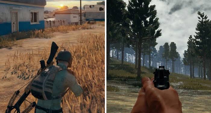 u may played video games I tpp (third person perspective) which is on left side n fpp (first person perspective) on right side.